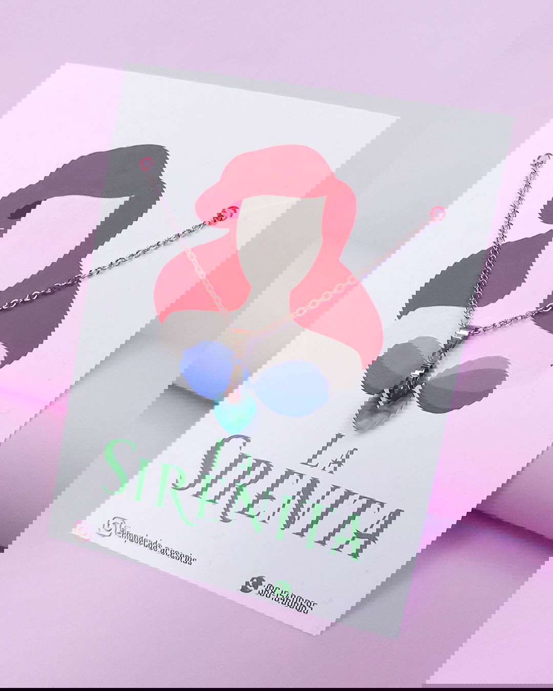 con cadena de acero quirúrgico y mini dije en cristal de vidrio forma corazón 10mm.