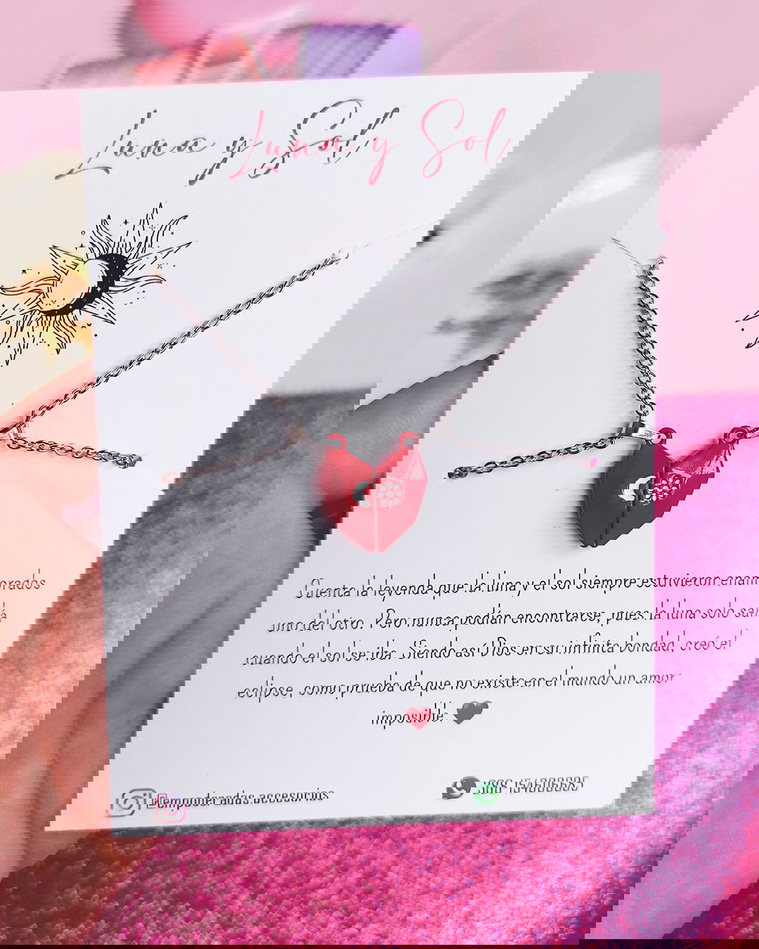 Collares para compartir con cadena de acero quirúrgico y dije imán en fundición de metal esmaltado.