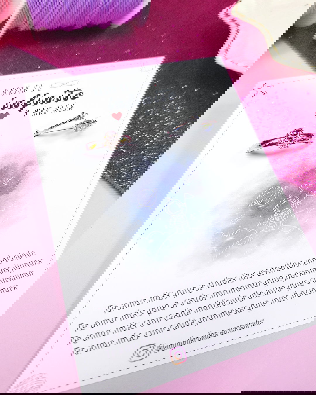 Se recomienda no mojar los anillos para que no pierdan color y brillo. Para mayor durabilidad de las piezas, se puede aplicar una fina capa de barniz transparente de uñas.