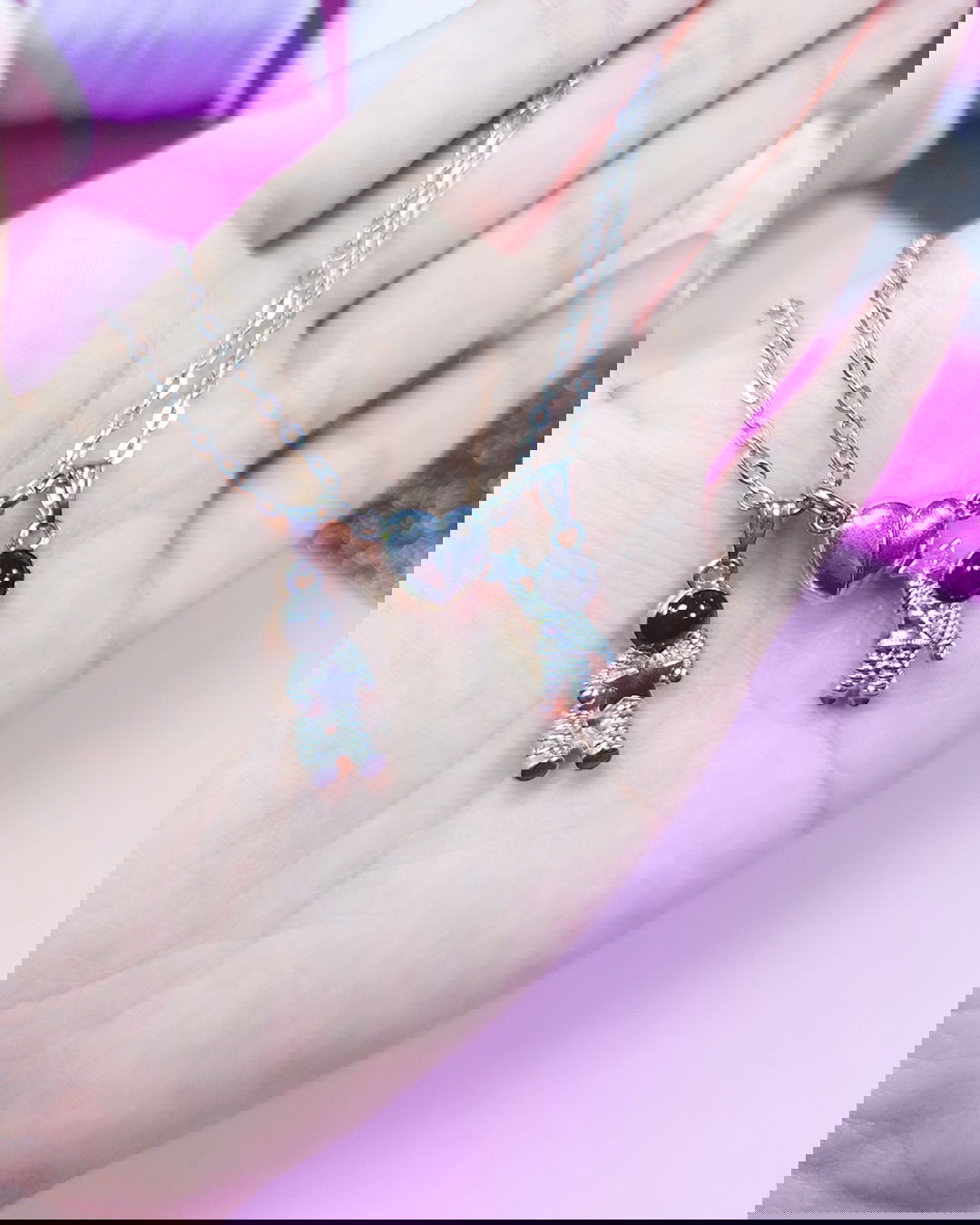 Se recomienda no mojar los dijes para que no pierdan color y brillo. Para mayor durabilidad de las piezas, se puede aplicar una fina capa de barniz transparente de uñas.