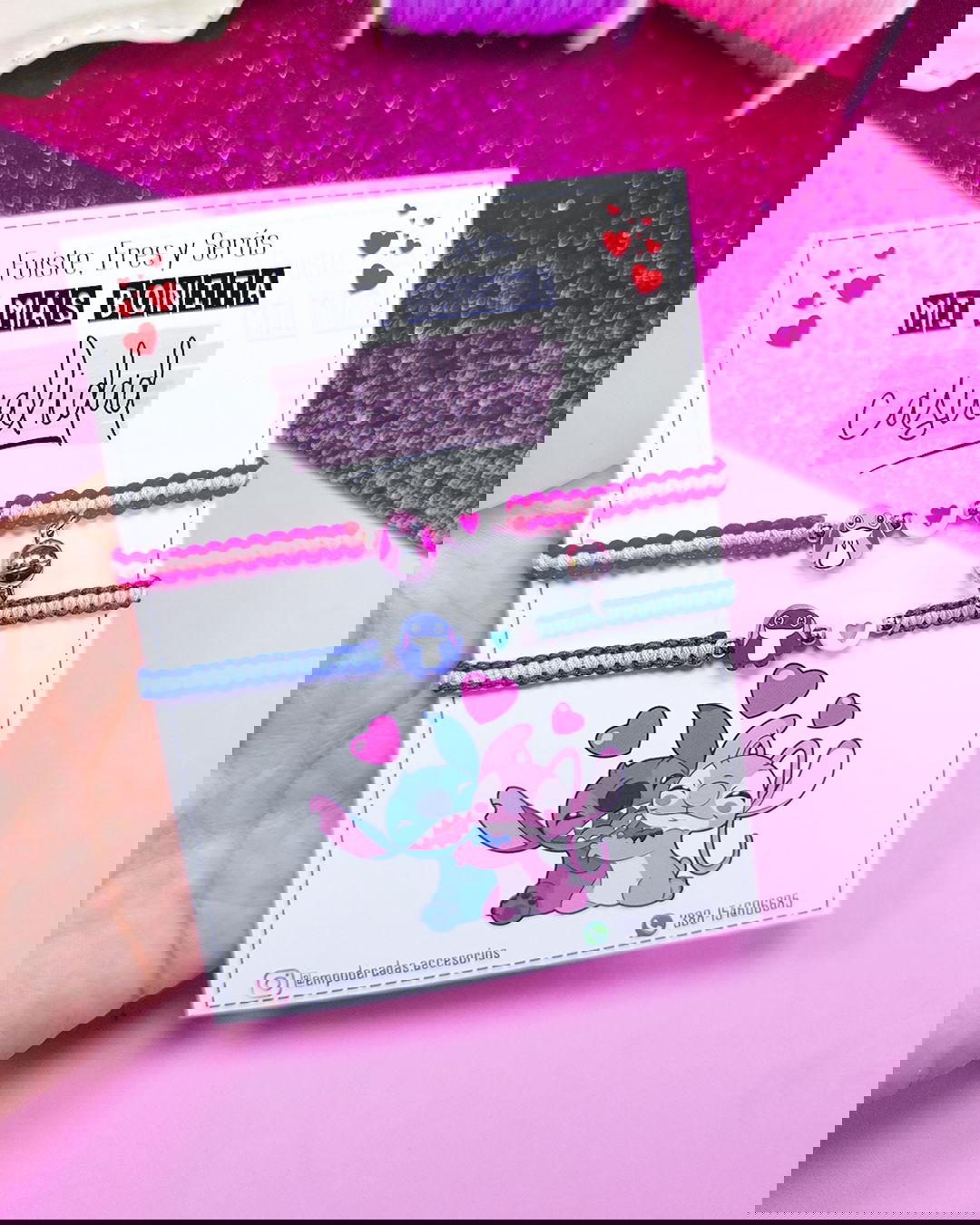 Posee nudo corredizo, por lo que la pulsera se adapta a cualquier tamaño de muñeca.