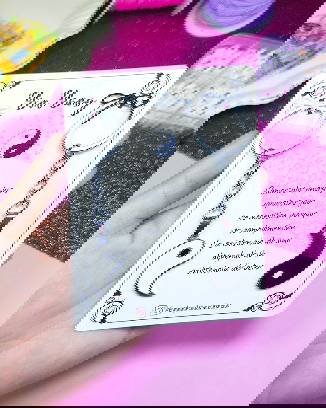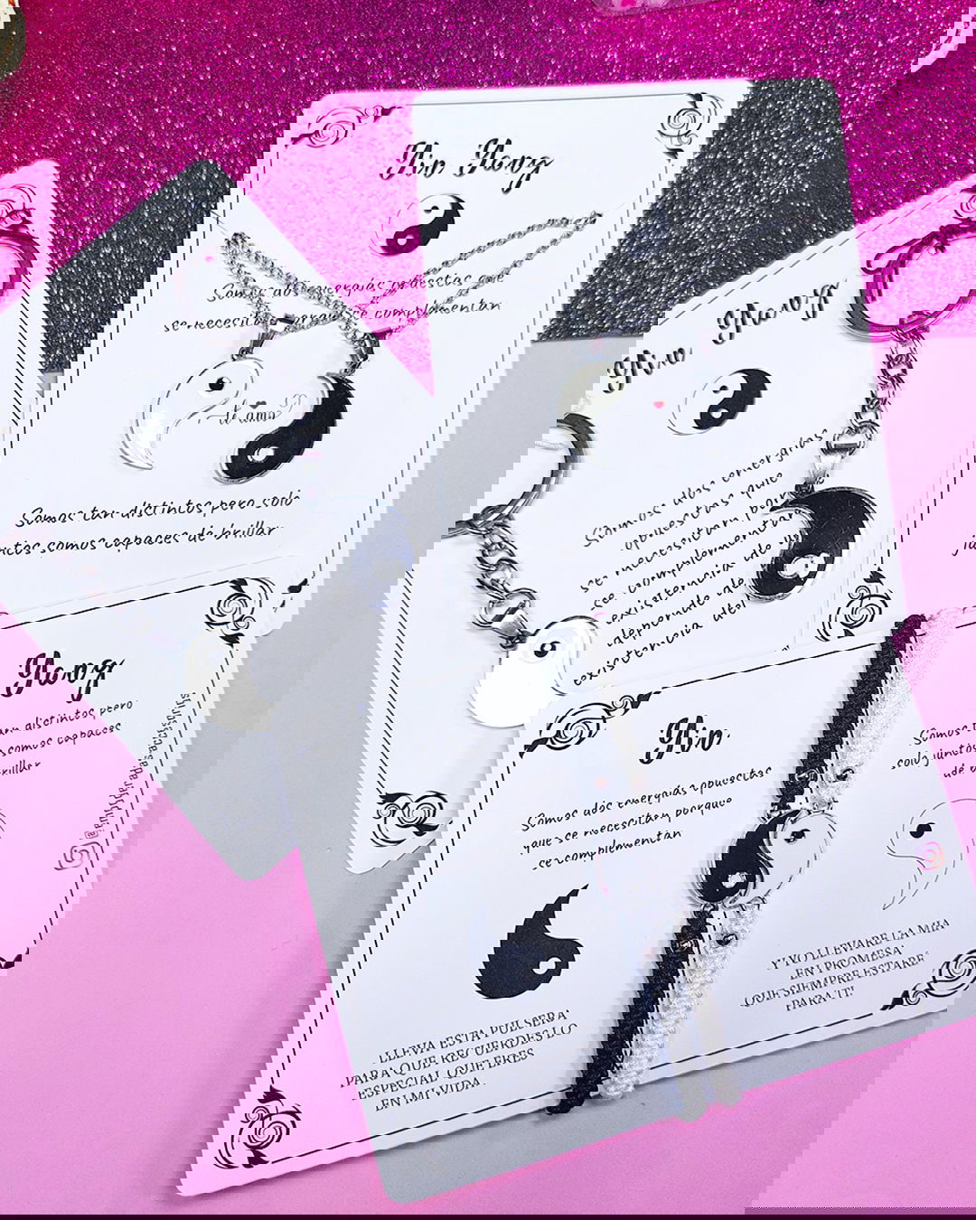 Un par de llaveros para compartir con dije del Yin Yang en acero quirurgico.