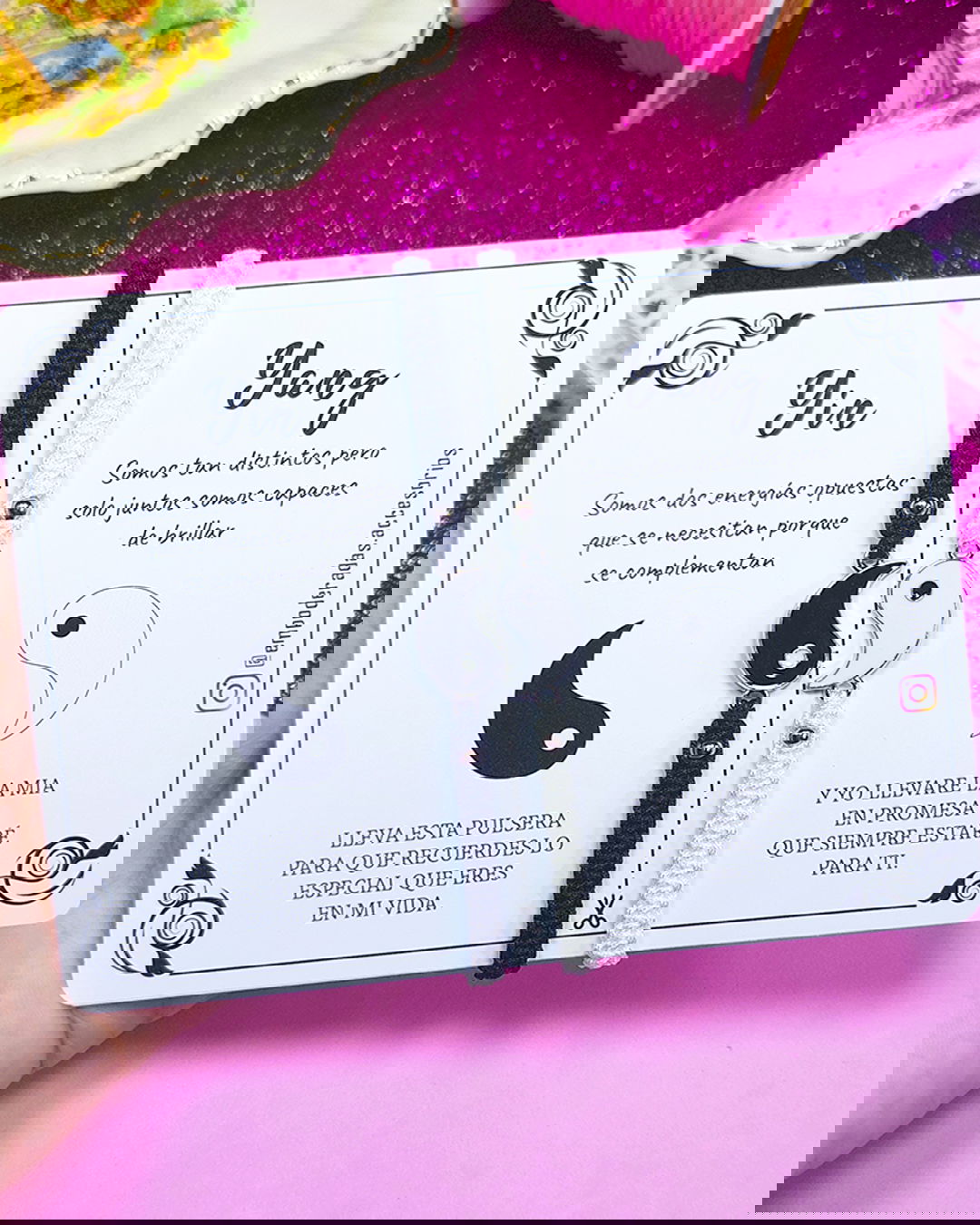 Pulsera: Posee nudo corredizo, por lo que la pulsera se adapta a cualquier tamaño de muñeca.