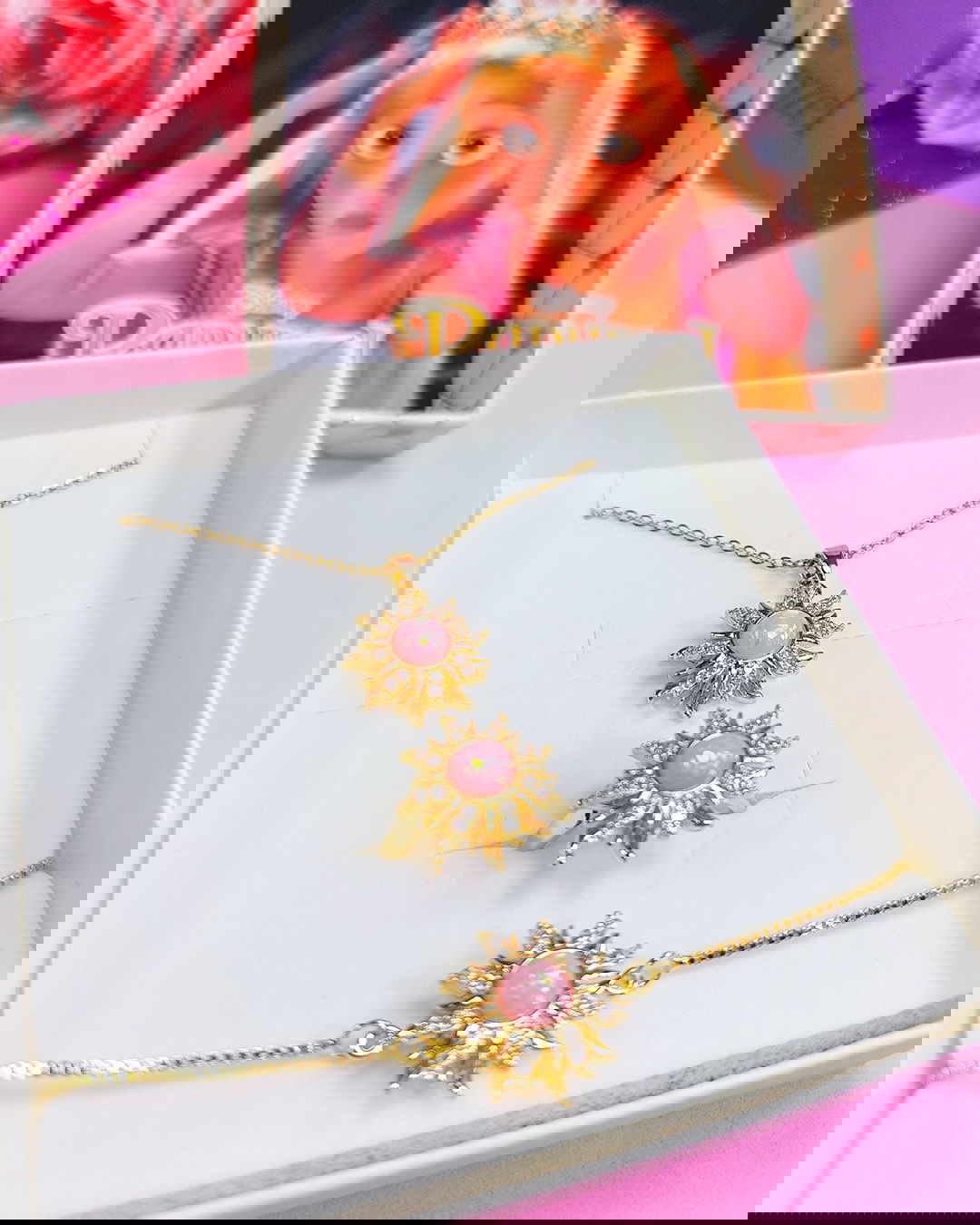 Collar , pulsera y anillo GIRATORIO ANTI-ESTRES en acero Dorado y dije con baño de Oro 18k.