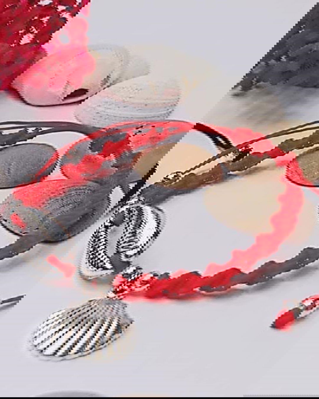 Pulsera tejida en hilo poliéster con dijes de aleación de metal.