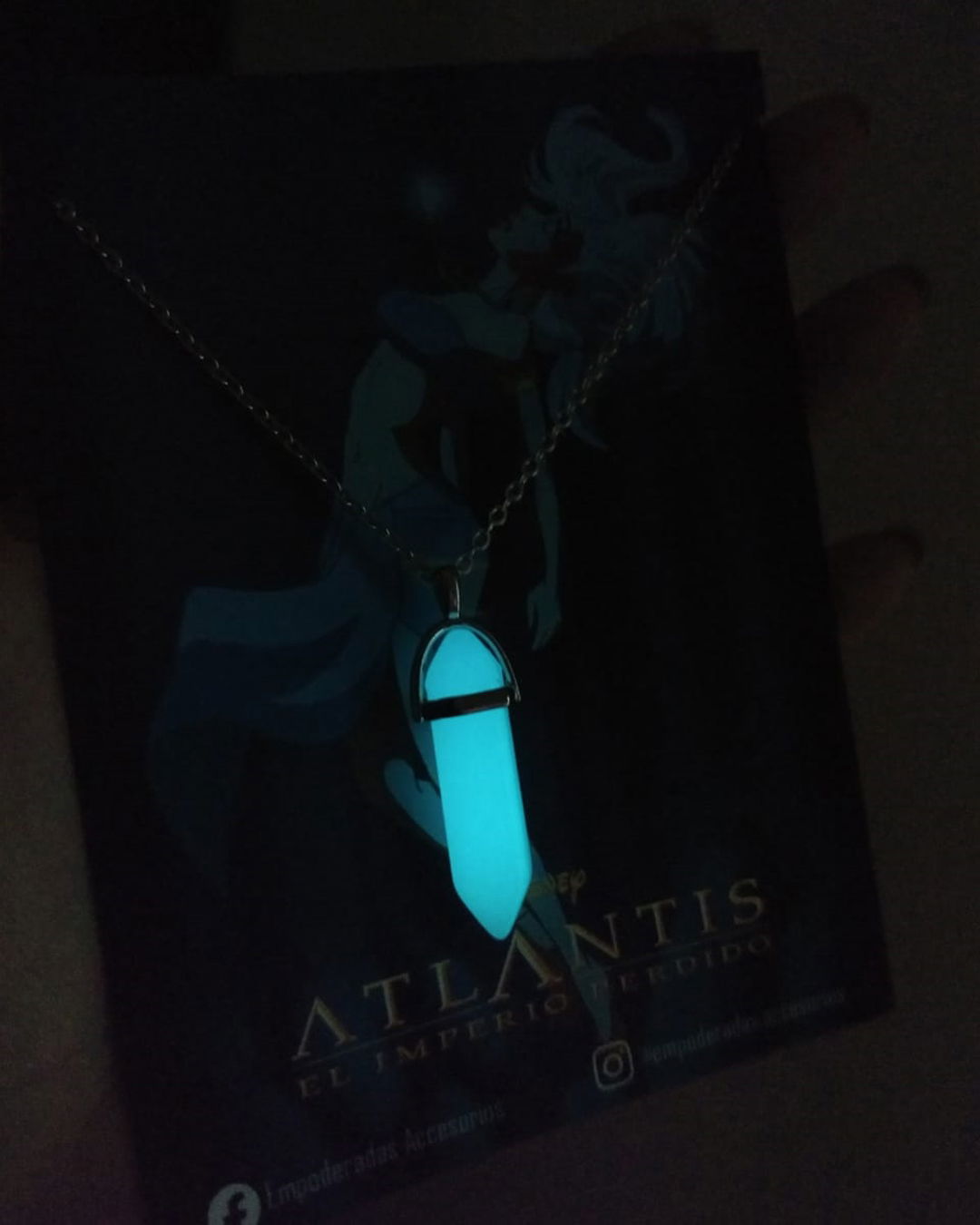 Collar Collar con cadena acero quirúrgico y dije de plástico duro que brilla en la oscuridad.