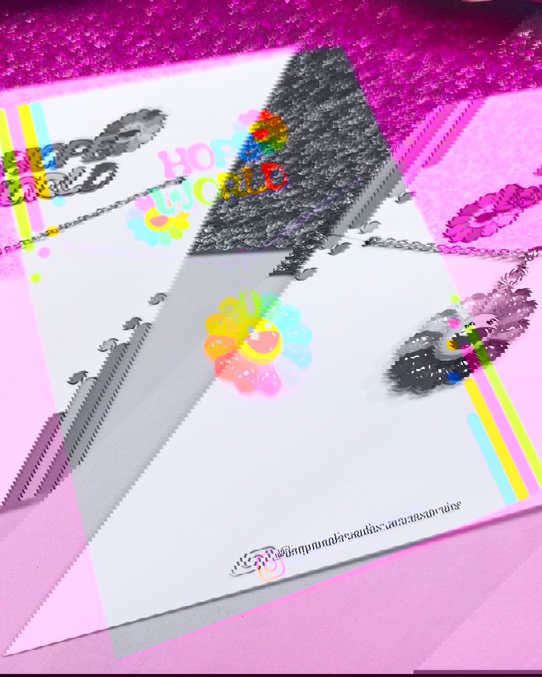 Se recomienda no mojar los dijes para que no pierdan color y brillo. Para mayor durabilidad de las piezas, se puede aplicar una fina capa de barniz transparente de uñas.