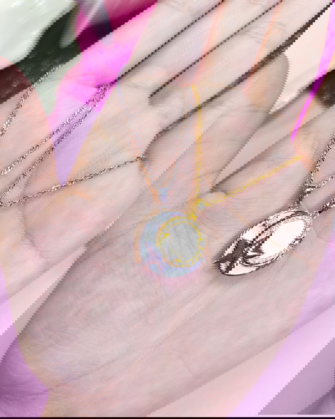 Collar con cadena de acero quirúrgico y dije de cobre bañado con strass.