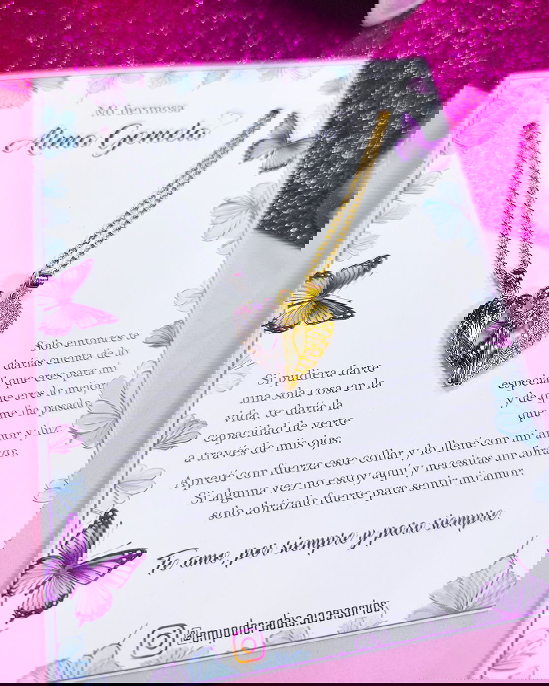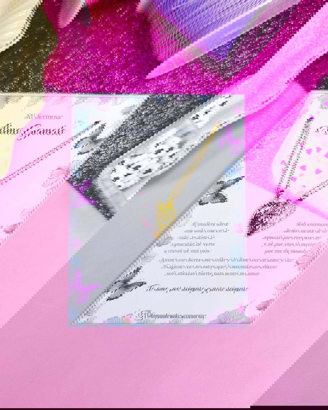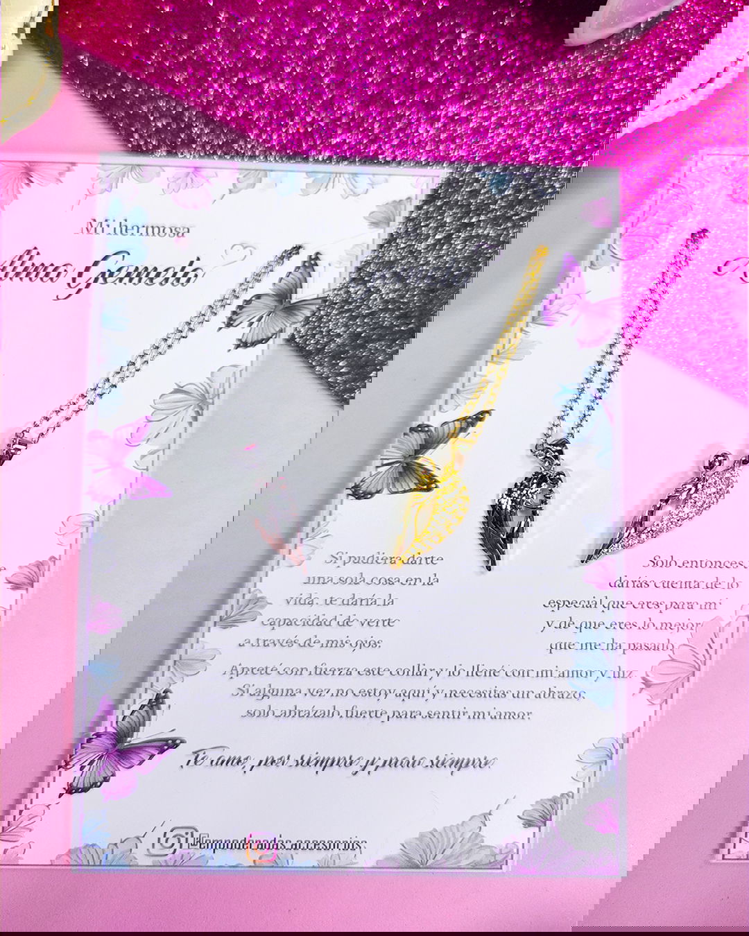Se recomienda no mojar los dijes para que no pierdan color y brillo. Para mayor durabilidad de las piezas, se puede aplicar una fina capa de barniz transparente de uñas.